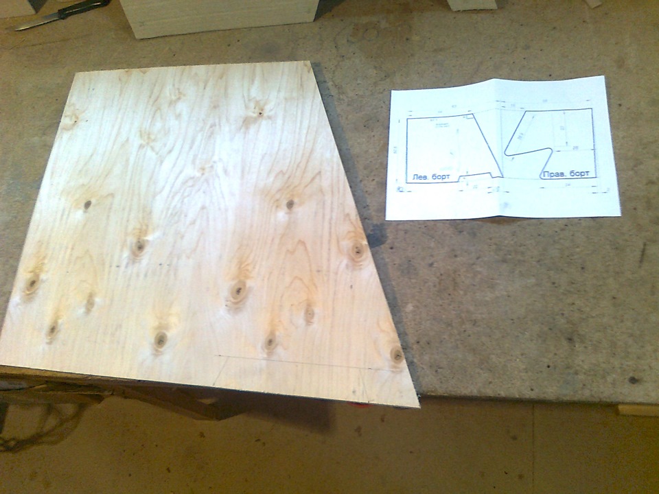 У меня был лист кривой второсортной нешлифованой фанеры 9мм. С ним я и начал колдовать.