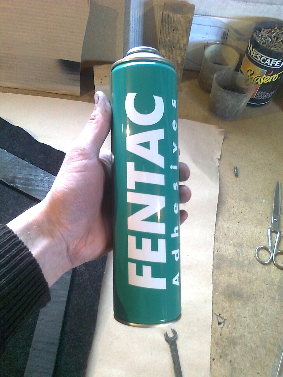 Клей использовал аэрозоль. Брызгает очень хорошо, ширина струи регулируется. 2-3 тонких слоя и дать схватиться клею минуты 3, затем клеить карпет. Сам клеил первый раз, но суть понял быстро)