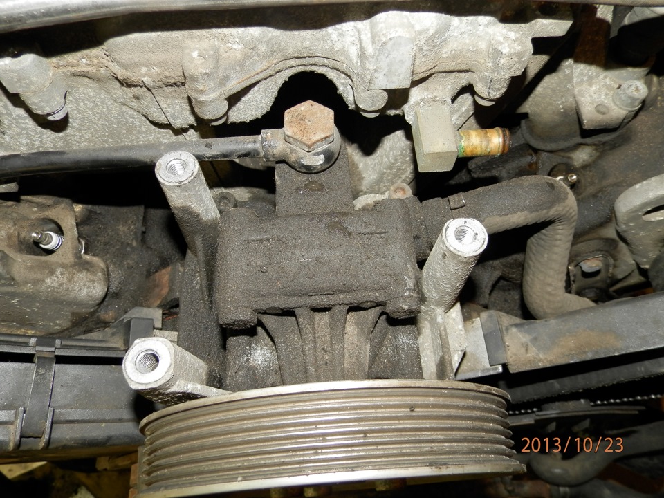 Обильное потение сальника насоса ГУР привело к сильному загрязнению пространства под впускным коллектором и самого насоса.