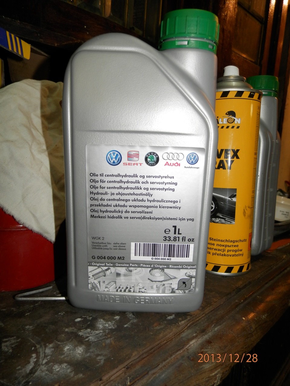 Заправляем отдельно насос ГУР оригинальной жидкостью VAG G 004 000 M2, остальное в бачок.