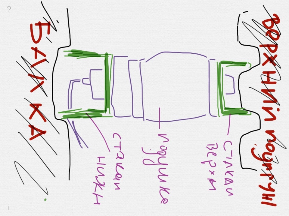 понятно, я уже заколхозил на своих резьбы и сверху и снизу, у меня стакан не влезет, в минимальном положении брекеты на подушки почти смыкаются
