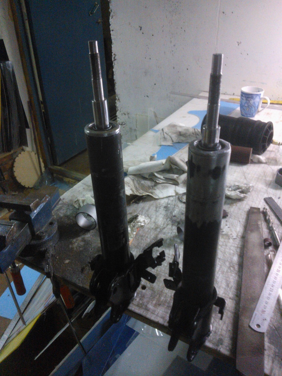 У них защелки пластиковые, я под них и сделал стаканы, и поршень получился больше, стакан нижний как продолжение основного поршня. А стаканы никак не крепил, поставил как пружины в распор, подвод снизу остался. Попробую изобразить схематично )