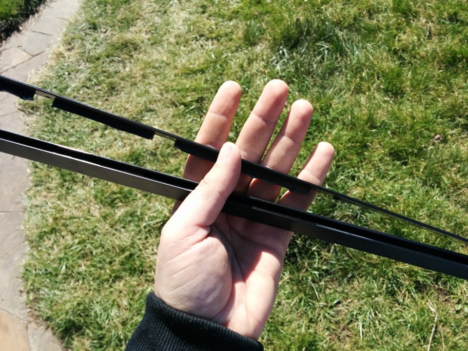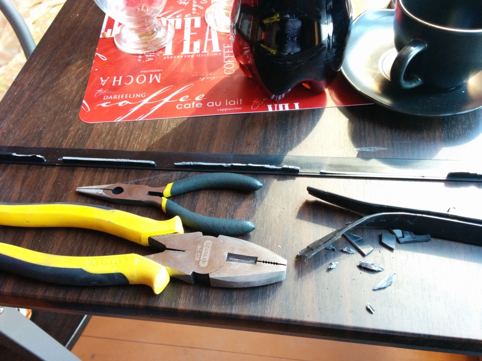 2. С помощью плоскогубцев отламываем обратную сторону П-образного профиля накладки. Ломается несложно, прямо по стыку. На одну накладку уходит 5-10 минут максимум.