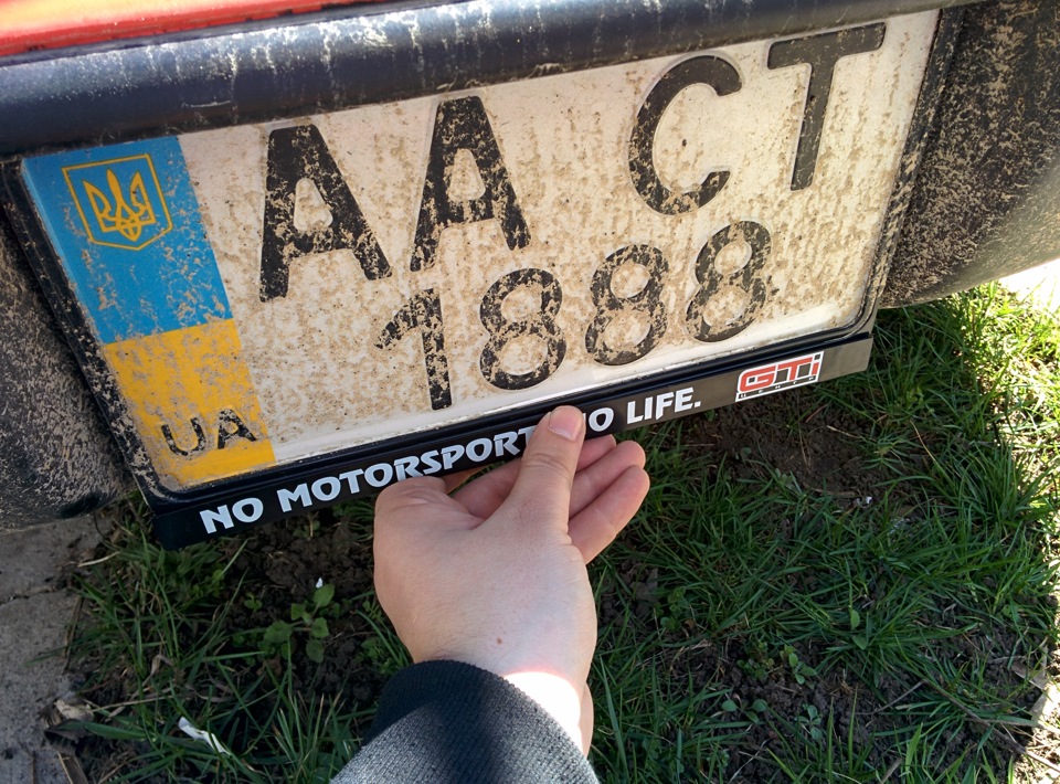 Поставив год назад номера американского формата, я печалился, что возможности выбрать рамку для них нет: сами номера по размеру идентичны американским, но нижний ряд цифр нанесен таким образом, что если использовать для крепления какую-то оригинальную американскую рамку, то выглядит некрасиво… А выбор рамок украинского производства, учитывающих особенности размещения символов на номере, мизерный.