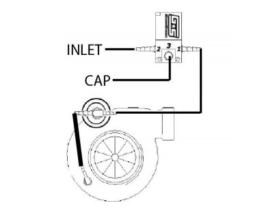 Сразу заметен один недостаток. При высоких значениях наддува и скважности близкой к 100% (т.е. при полностью открытом соленоиде) актуатор всё равно будет находиться под некоторым давлением, из-за того, что какой бы идеальный 2-ух портовых соленоид не был, он не сможет стравливать мгновенно всё давление. Возникает ситуация при которой вестгейт оказывается захлопнут не полностью (или что ещё хуже — "хлопает" ) из-за некоторого нестравленого из актуатора давления. Вот тут то как раз и приходит на помощь 3-ех портовая схема подключения:
