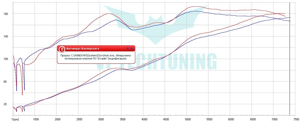 До максимальной мощности на 7600 не дотянули, так как замеряли на 5 передаче и уперлись в отсечку по скорости. Я думал она снята, а на 190 км\ч отбой дал двигатель. Надо будет попробовать в след. раз на 98 бензине и на 4 передаче. Может дотяну до заводских 210 коней? ;)