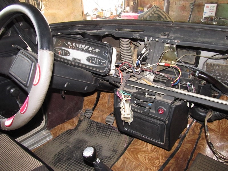 Ставлю магнитолу. Опять нежданчик. Корпус магнитолы оказался длинным. Пришлось снова понапрягать напильник.