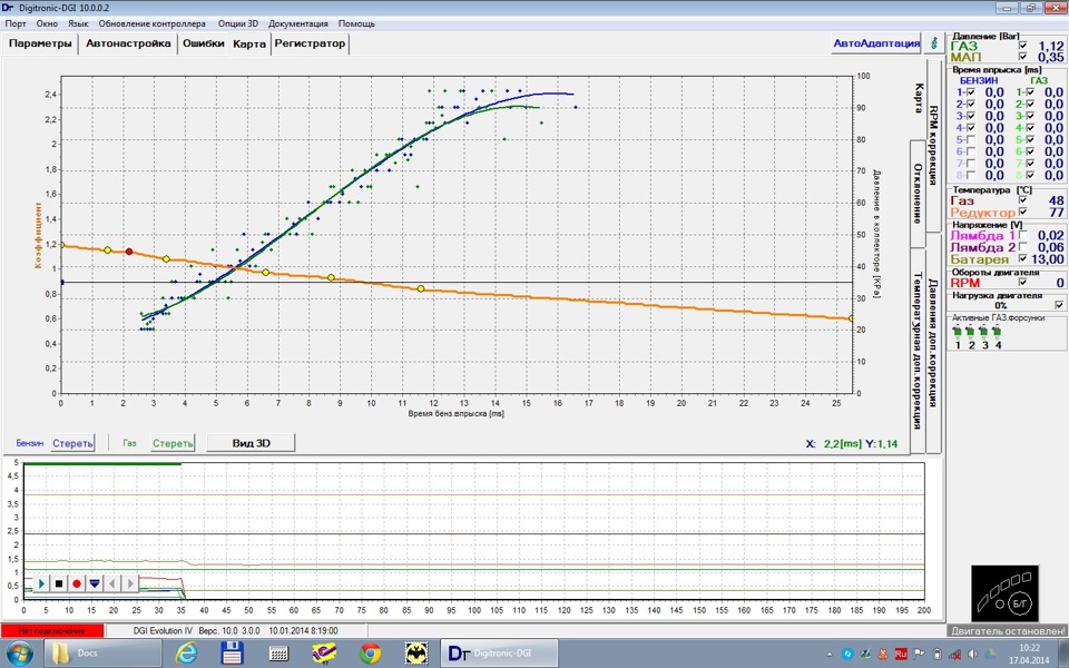 При настройке выявилось что бензиновая часть работает не безупречно, поэтому настраивал по показаниям OBD сканера. Вот что получилось.