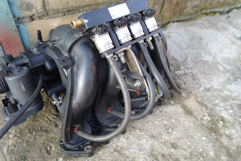 Итак монтаж форсунок. Был снят коллектор и смонтированы газовые форсунки согласно найденной в интернете схеме монтажа ГБО Prince.