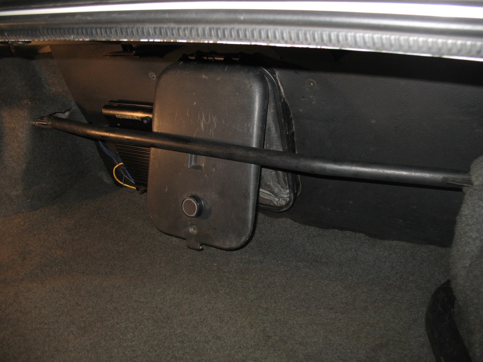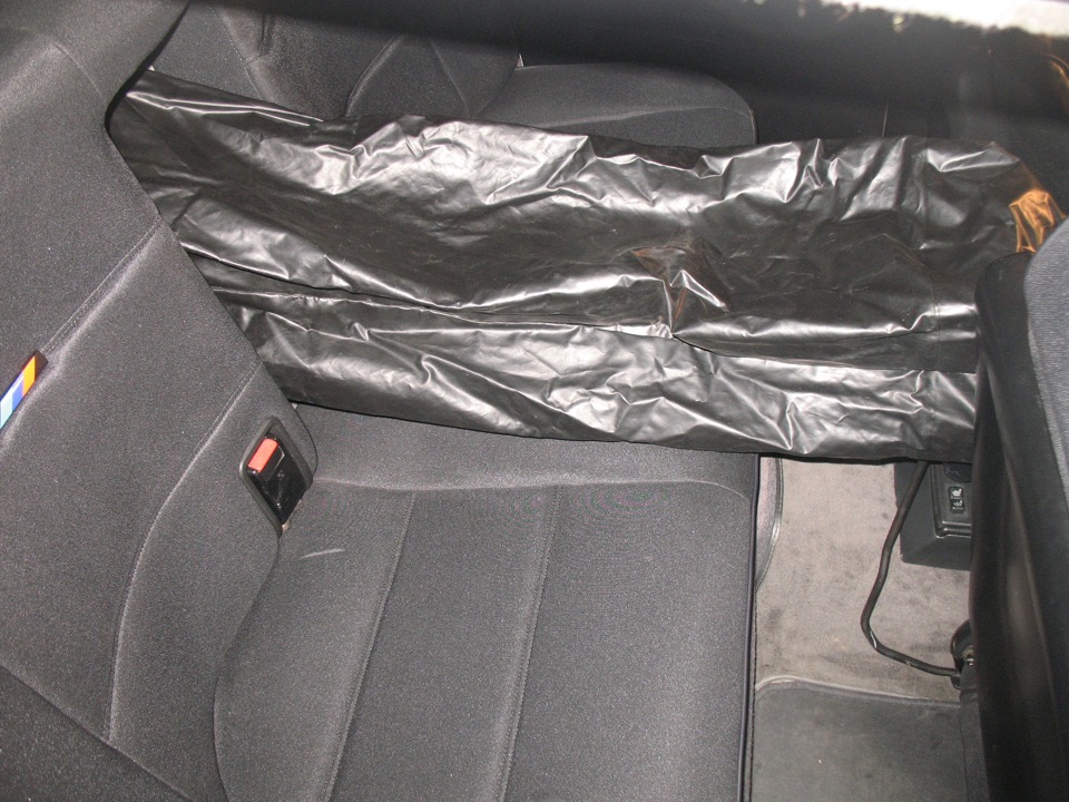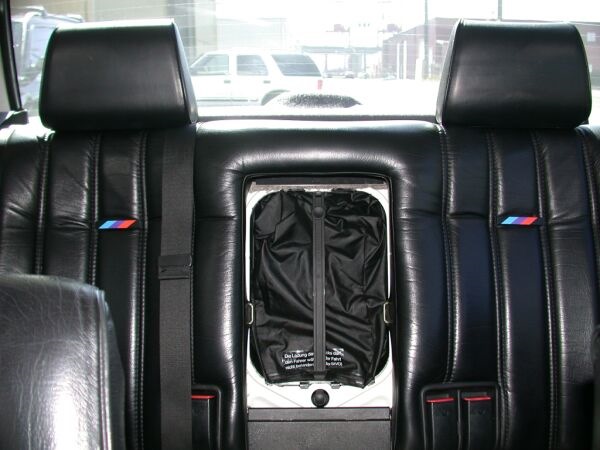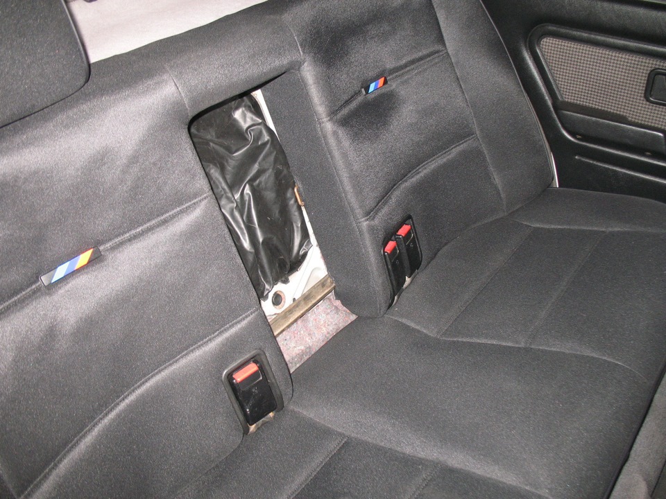 Кстати, видел несколько раз фото Е30, на которых этот проем отсутствовал — перегородка была цельная. В такую машину его поставить не получится. Еще одним необходимым условием является наличие заднего дивана с подлокотником — для доступа из салона. Коробка чехла просто плотно защелкивается в проем перегородки со стороны багажника.