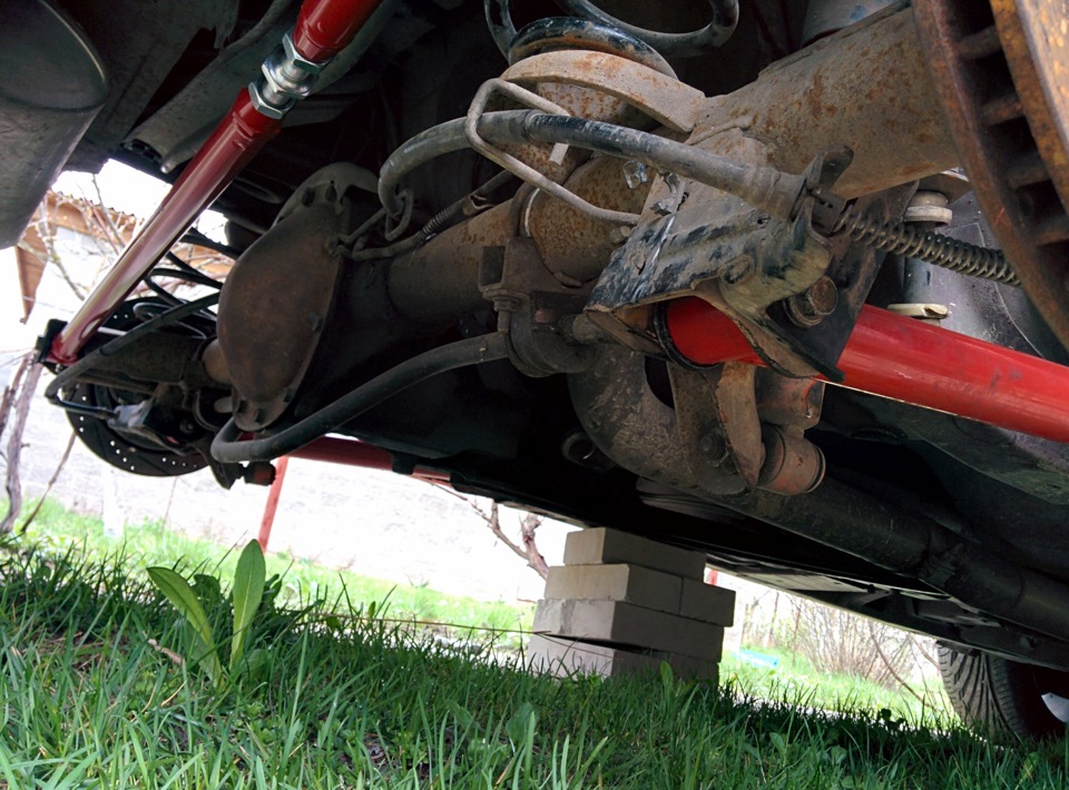 В-общем, после моего осеннего прилета в бордюр — повез фаер на эвакуаторе на СТО диагностировать повреждения. Загнали на яму, смотрели 4 человека, включая директора станции. Вердикт: менять оба задних рычага, тягу Панара, крепление тяги Панара и стойки заднего стабилизатора. Уже недавно я заказал рычаги и тяги от Founders Performance. На прошлых выходных приступил к установке, на этих — закончил (процедура — ниже, как всегда, НИЧЕГО реально сложного, если есть инструмент, инструкция и время). Так вот, из всего вышеперечисленного реально под замену — только один рычаг! Ну ок, тюнинговые рычаги все равно попарно продаются, так что два. Но тяга Панара и ее крепление — ИДЕАЛЬНЫ. В то время, как весь этот консилиум диагностов (справедливости ради, и я тоже) тогда вообще не додумался посмотреть, что происходит с полуосью — очень похоже, что вот ее погнуло…