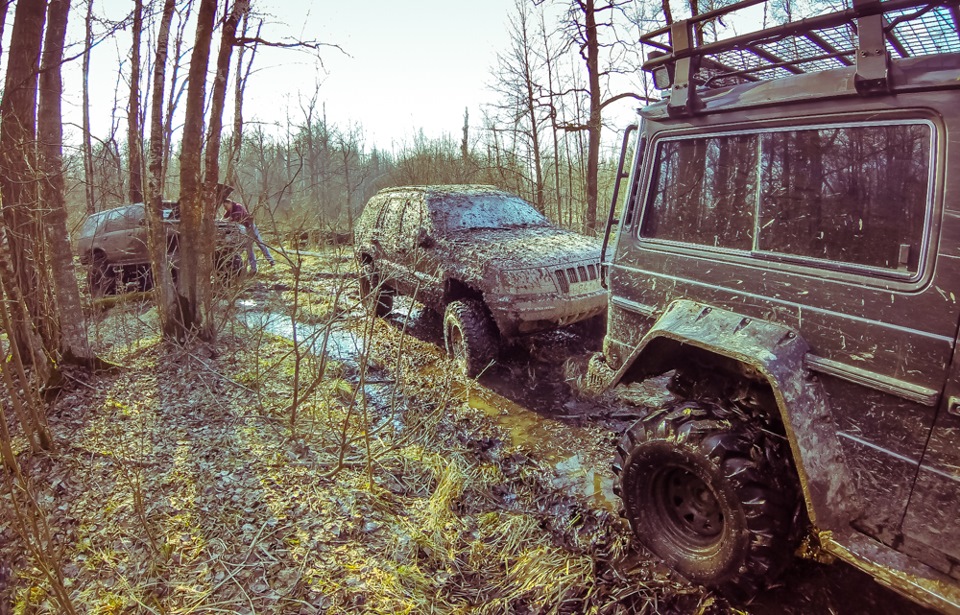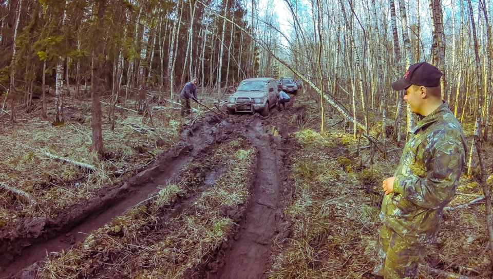 JEEPы сами не проедут, паджера тоже, приходит радостная новость — патруль стал заднеприводным. В общем, если всех перетаскивать лебедками, аккурат к утру понедельника успеем. Решаем разворачиваться и выбираться по дороге по которой эвакуировали лендровер.