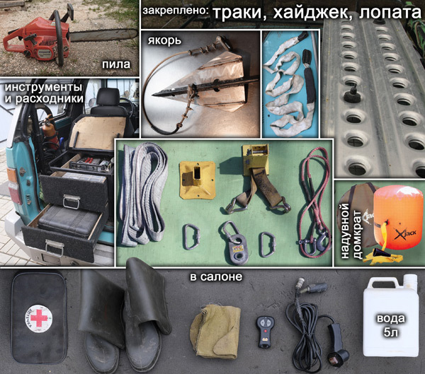 1) дополнительный бензобак и бак для воды, перекачивающий насос, все защиты, пружины задней подвески