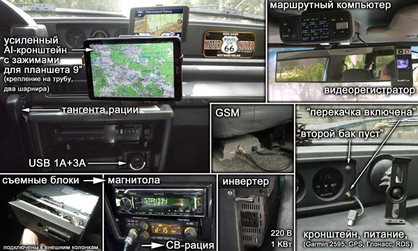 4) рация, магнитола, навигатор, маршрутный компьютер, инвертер, индикация второго бака и др. гаджеты