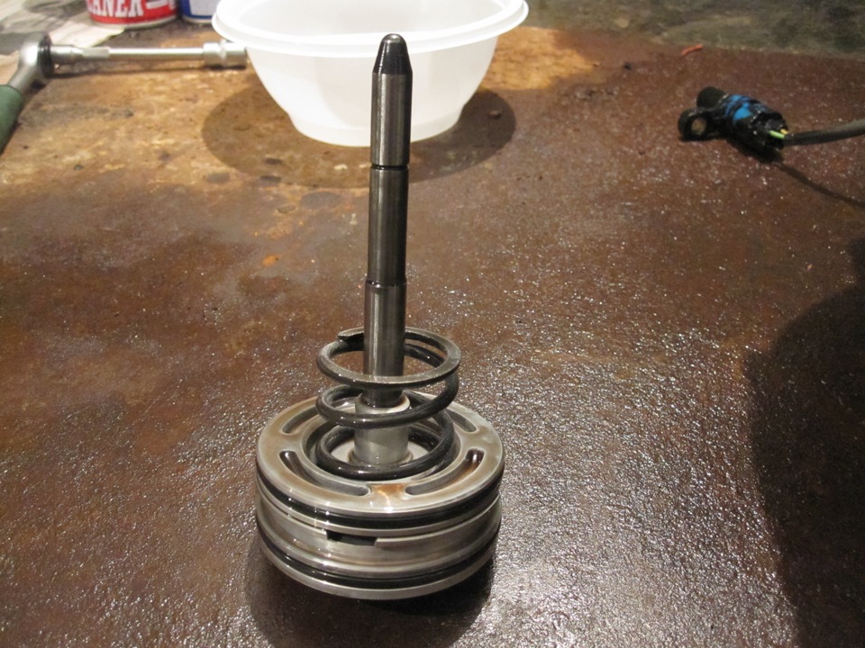 Вот и подошел я к завершающей стадии разбора акпп. Как писал ранее осталось вынуть гидроблок, но сначала его нужно освободить от держащих других частей (короче снять ГБ не представляется возможным без разбора коробки, можно снять только соленоиды). Итак, на очереди поршень, который снимается снаружи (как точнее назвать не знаю):