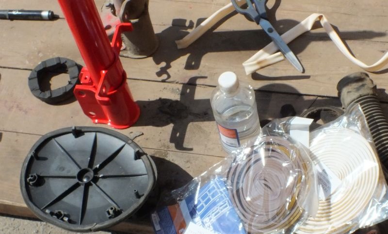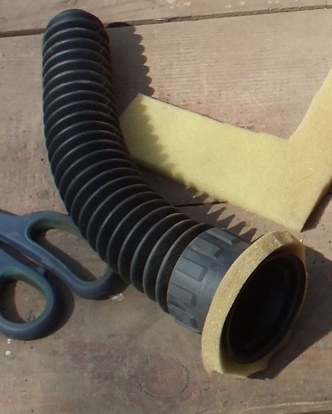 Далее, нижняя часть. Нам нужно добиться того, что бы внутрь нижней чашки не попадала грязь (песок и т.д.), . Для этого можно воспользоваться поролоном (ничего другого в тот момент в голову не пришло), вырезав вставку между пыльником и чашкой. Фиксируем 3-4 точками герметика прокладку к пыльнику, после подсыхания соединяем чашку и пыльник, и вместе стыка, сверху, все хорошо промазываем герметиком. т.е. у нас получился своеобразный кондом, для штока, опорного подшипника и нижней чашки.