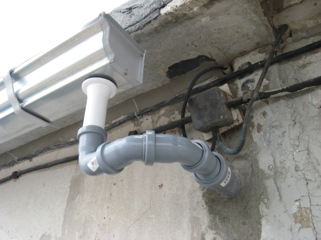 Сливаю воду из бочек, промываю всё. С желоба снимаю колено, чтобы не затекала новая вода. В трубах воды не остается