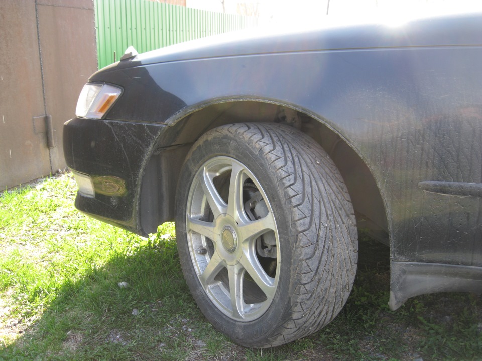 Переобулся давно уже вот только руки не доходили сфотать летние тапки с резиной.Пока был в огороде решил зафотать, машина конечно грязная, мыть уже не стал.Сейчас хочу купить проставки на передние колеса, близковато стоят. Резину купил Triangle TR968 размер 215/50 R17