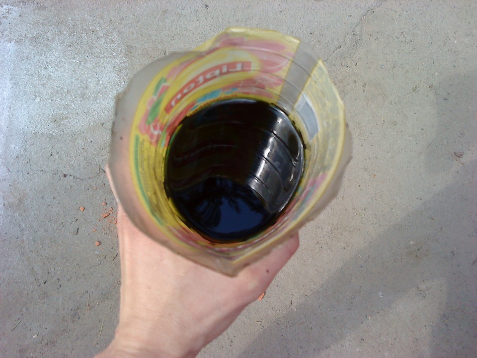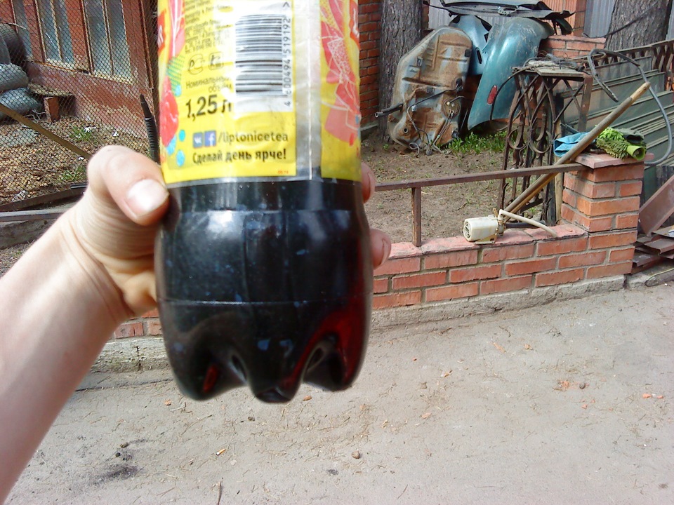 Наконец то добрался до жидкости, так как надоело мне при резком повороте руля, он тяжелел. Для удобства я снял бампер, соответственно защиту, АКБ и прочее к нему. Разобрался какой шланг обратки (ОН верхний) взял бутылку, друга попросил открыть крышку заливной горловины, подсоеденить АКБ и завести машину и крутить рулём. И полелась всякое ГГГ в эту бутыль, вместо зелёной, потекла чёрная жижа