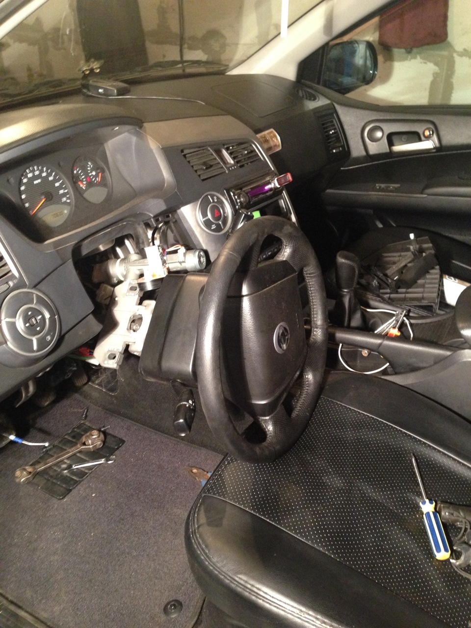 1)Первым делом снимаем кожух под рулем, он крепится на пару болтов и на защелках, когда полезете разберетесь.Я снял рулевую потому что хотел перепаять подсветку замка зажигания, а для этого надо снимать рулевую.К сожалению перепаять не получилось((