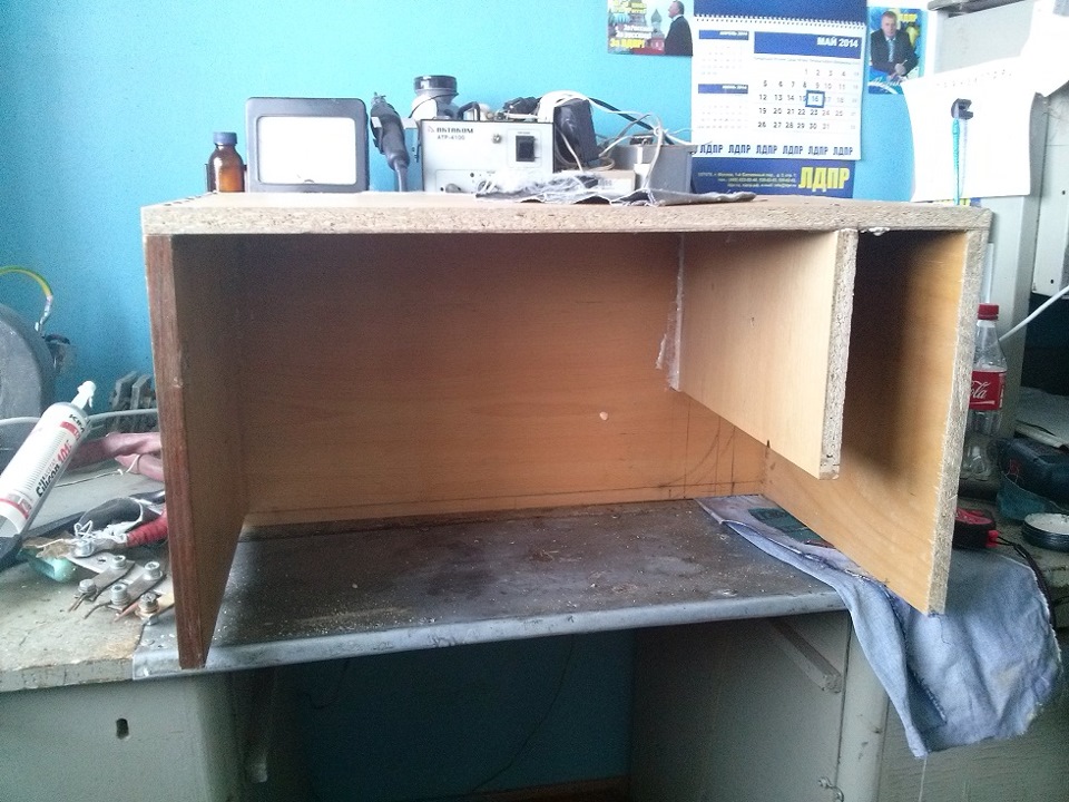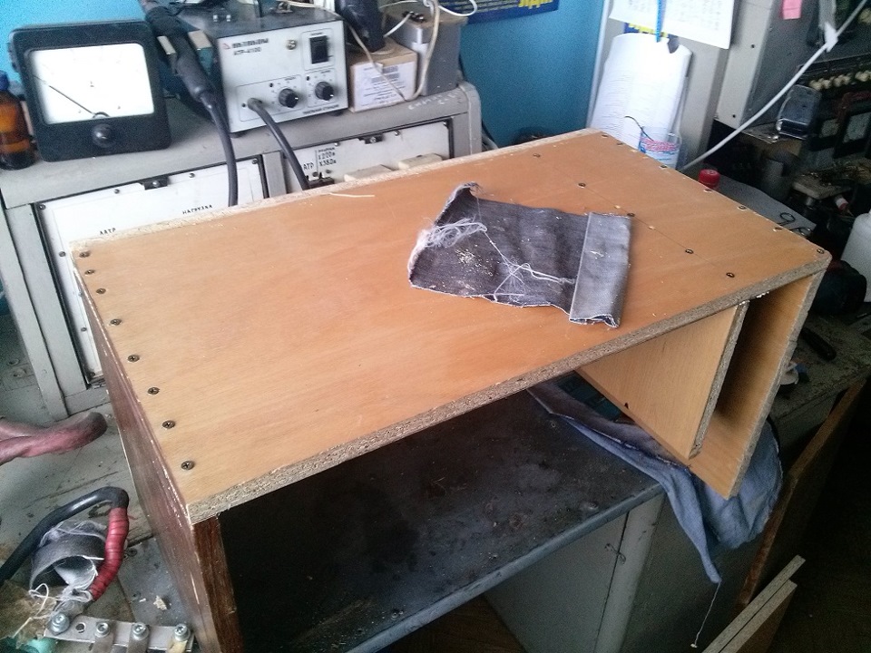 Начал собирать уже сегодня. Купил саморезы, карпет, клей-спрей, клей ПВА и кусок синтипона (погорячился взяв 2 метра) и взял у столяров пару жменей опилок. Приехал в цех и начал химичить по схеме.