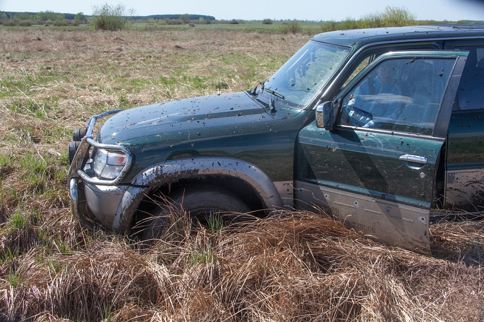 Ну а потом мы решили съездить в лес, недоезжая метров 300 перед лесом в полях была небольшая полоска воды, чтобы не мочить ноги решили доехать на машине. Надо конечно возить забродники, чтобы броды проверять, но на вид ничего не предвещало.