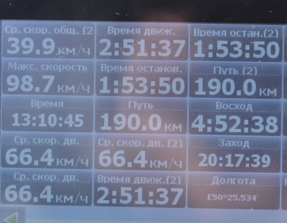 Первая точка есть, навигатор показал путь 190км, максимальная скорость на маршруте 98,7км\ч