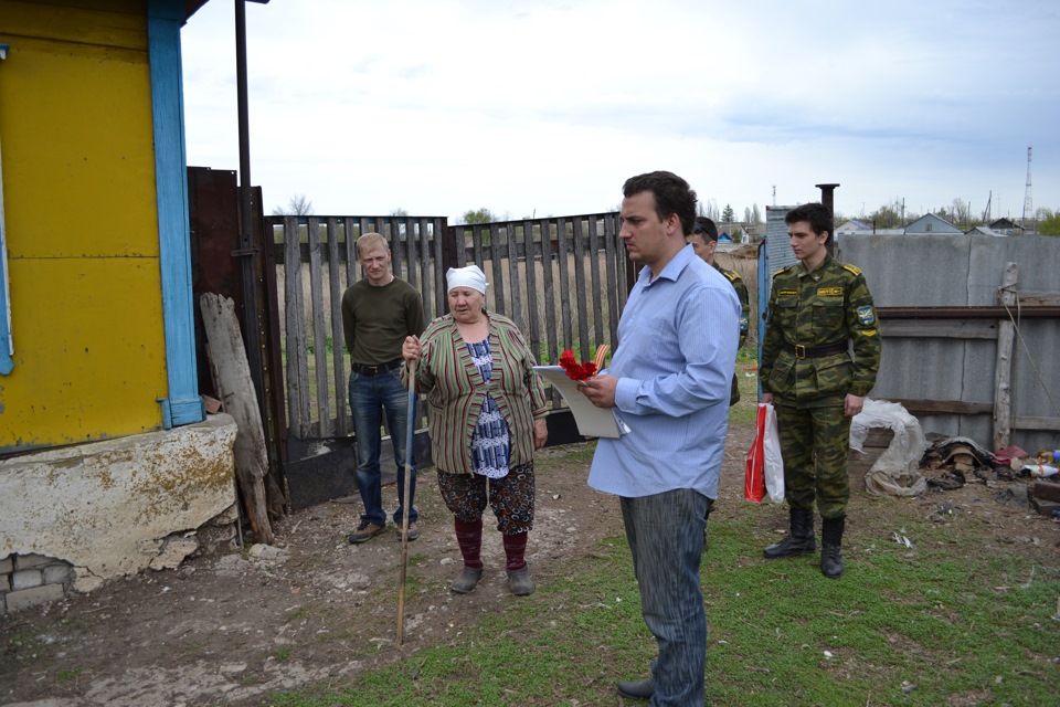 Деда призвали на войну в 17 лет, сразу отправили на фронт, прошел и польшу и берлин. . Отрезали ногу, вторую тоже хотят врачи отрезать, инвалид 1 группы, доплата за инвалидность 2100руб. Газа в доме нет, водопровода тоже. Комиссия признала дом аварийным, поэтому ни водопровод ни газ проводит отказались Переселять тоже некуда. Полы напоминают американские горки, страшно ходить, прогнило всё. Поздравлять никто не приезжал 9 мая. На отшибе у болота сидят в двоем, выживают.