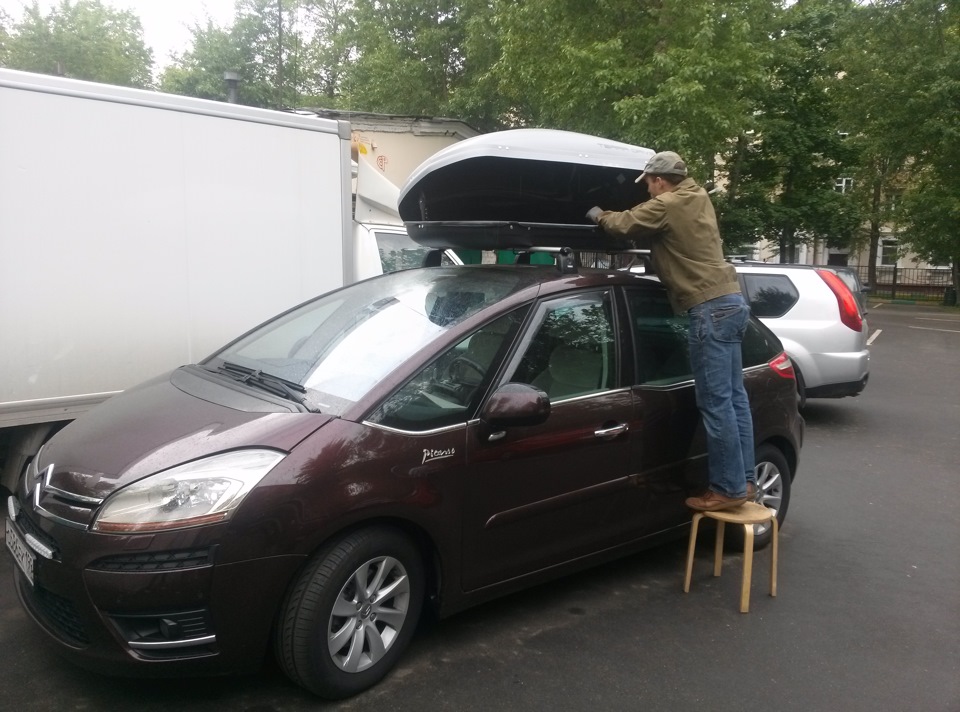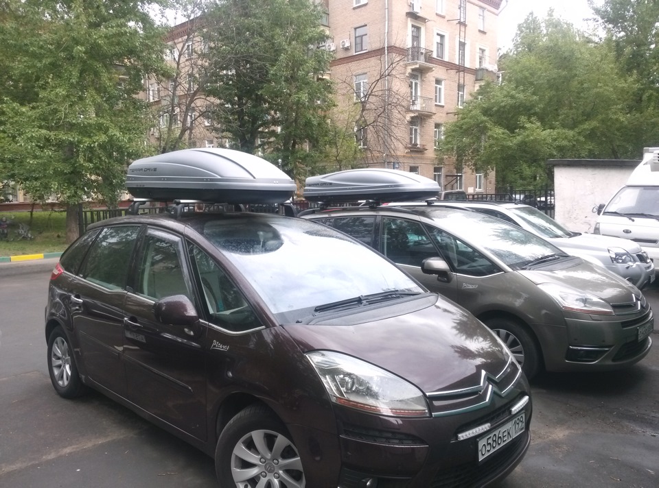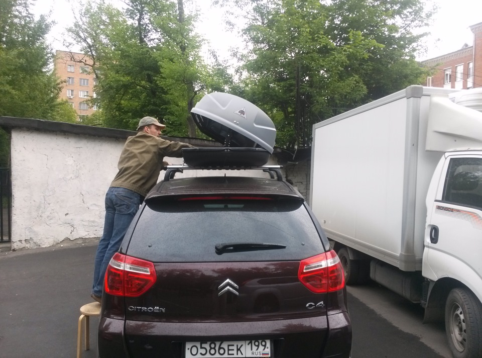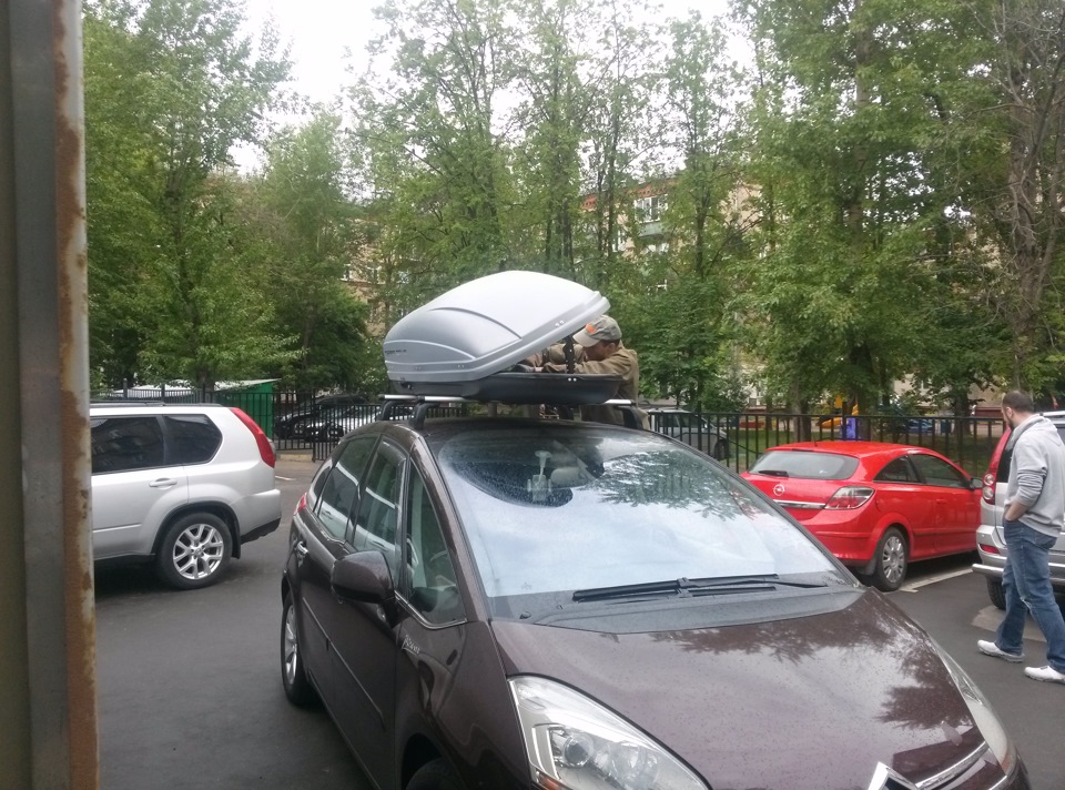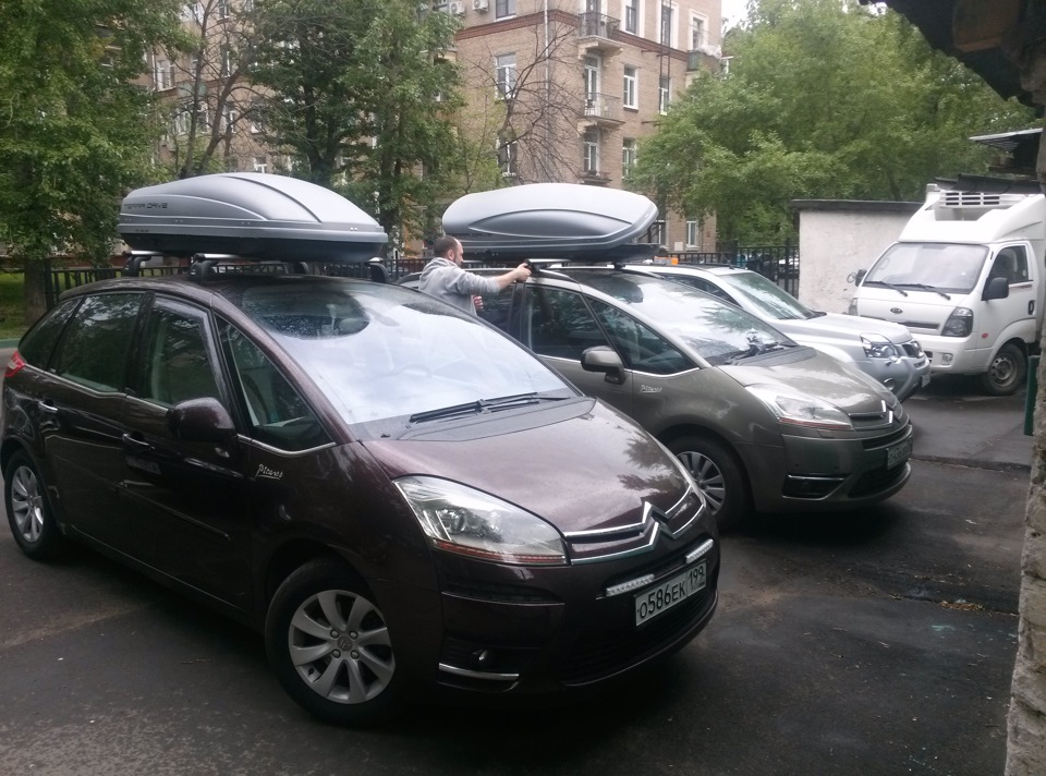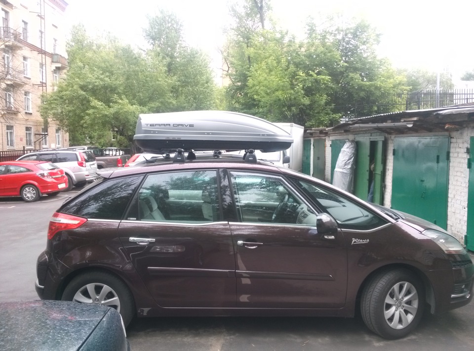 Итак сегодня это случилось) Я стал счастливым обладателем багажного бокса на 440 литров Terra Drive, из опций — двухстороннее открывание и крышка серого цвета.