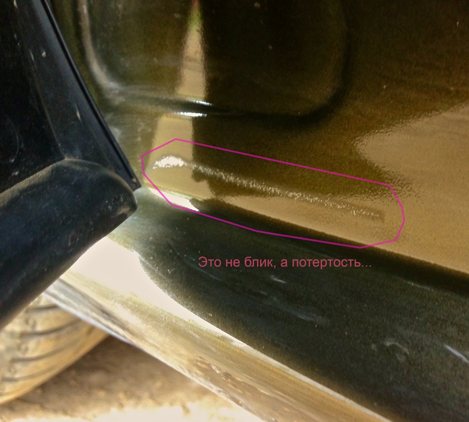 Не, мужики, я вам поражаюсь. Машина не под стеклом стоит, а эксплуатируется, соответственно изнашивается, какие могут быть претензии. У меня потертости только с краю двери, ближе к стойке, просто забил — этож кусок железа.