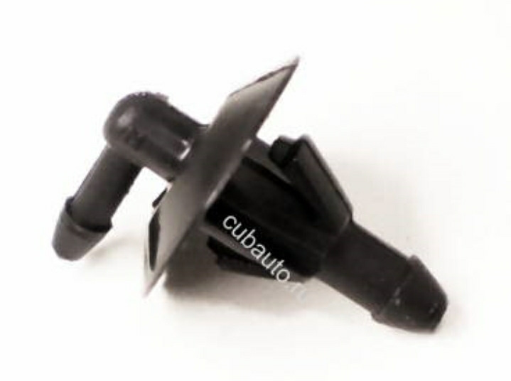 После приобретения мягкого чехла на зап.колесо и примерки его на место выяснилось, что резинка стягивающая чехол перекрывает работу форсунки. Было решено поменять штатную форсунку на другую, установленную на поводке з/дворника. В своё время такая же была установлена и на Матиз жены. На эту роль подошла форсунка (жиклёр) от ЗИЛ-4331/5301 "Бычок" (1102-5208040) с двумя соплами. Посадочные усики пришлось немного подточить надфилем до размера поводка дворника и погреть феном при установке.