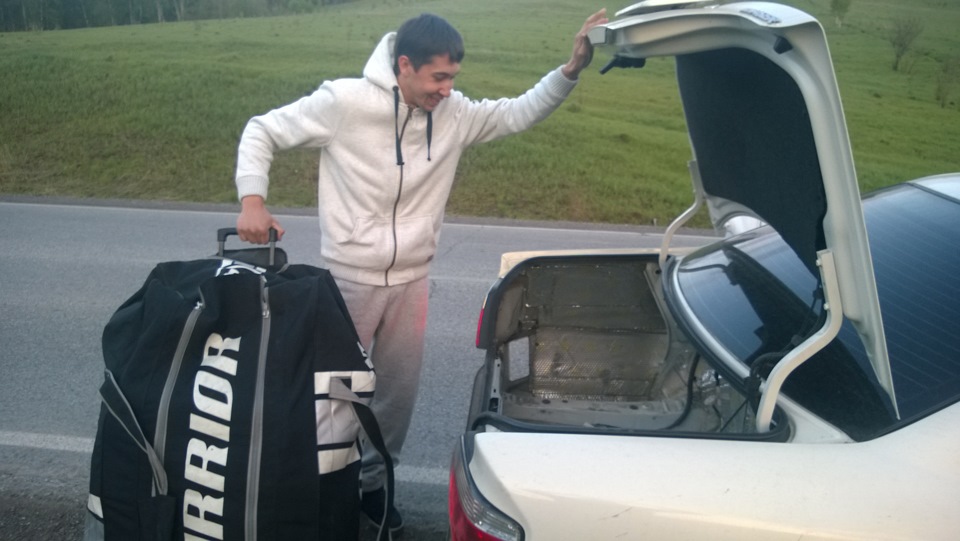 Далее мы с Саней на Чайзере решили стартануть с 40 км/час) Саня в этот момент решил немного добавить балласта в свой авто, чтобы был лучше зацеп, так как привод задний:
