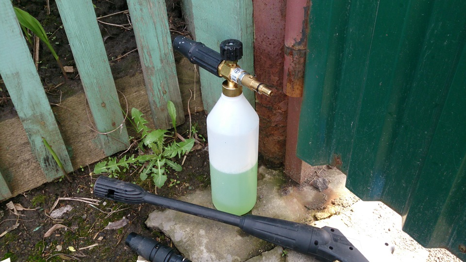 Бытовая автомойка уже довольно давно есть, с 2006 года. Служит верой и правдой. Но вот штатный пенокомплект оставлял желать лучшего.