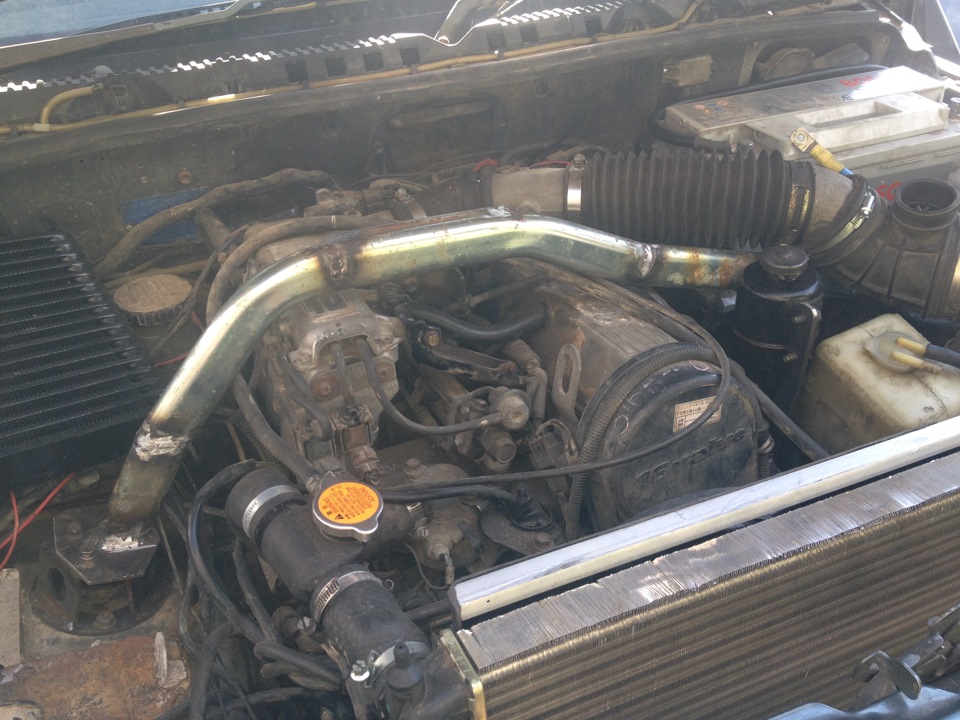 ТОже поставил радиатор как у тебя в надежде запихать под него лебедку. Заливную горловину купил от тойоты Витц, диаметр патрубков 32 мм, пробка и выход к расширительному бачку. Номер 1650221080, 460р в автодоке стоила.