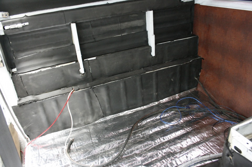 начал собирать салон, устал ждать вибру, и заклеил все шумкой и немного виброй в местах где большая площадь железа, шумки ушло квадратов 18 и еще хочу пол сзади на раз закатать, а то немного слышно движку через пол, убили просто передние арки где с верху над ними закрывается дверь, ничего туда не приделаешь, щель остается только под ковролин который буду ложить как денежка появиться.