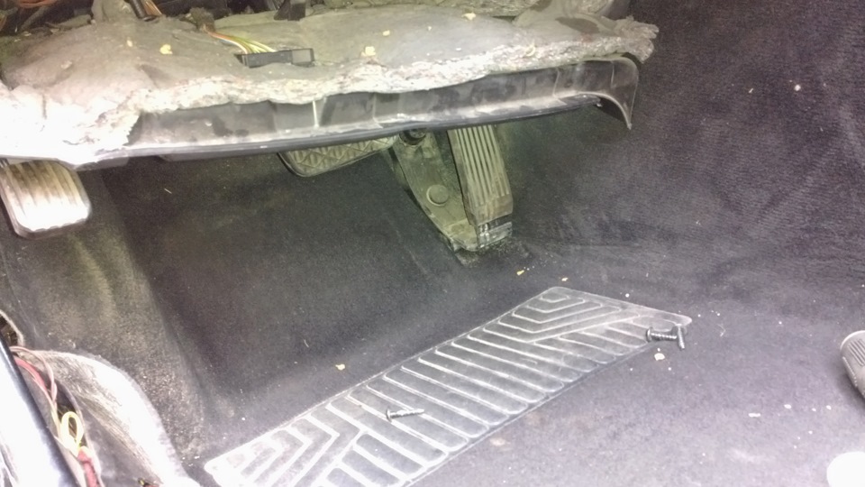 Оттягиваем обшивку вниз, заглядываем внутрь и сразу видно "лягушку" над педалью тормоза.