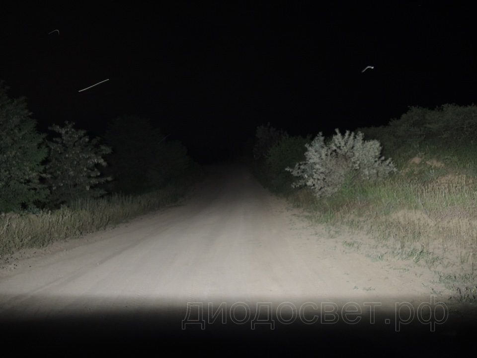 <<ни по одной фотографии, виденной ранее, не воспринималась способность иллюминаторов освещать окружающее пространство. Светильник рабочего света 1 м, подключенный к зарядному устройству при потреблении 4 А (полмощности), позволяет на 50 метрах легко прочесть надпись на банкноте :"подделка билетов банка России преследуется по закону".Good Может и дальше, но путь был перегорожен чужим забором.