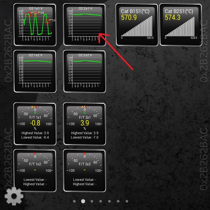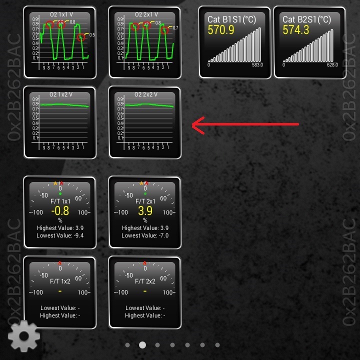 Горит чек, машина не едет, на холостых может подтраивать, показания по второму датчику так же около нулевые. Слева видно как активно работает второй верхний зонд. Нижние включаются в работу позже, когда прогреется катализатор и обороты достигнут 3-4 тысяч. По нижним датчикам также есть код ошибки, о нем ниже…