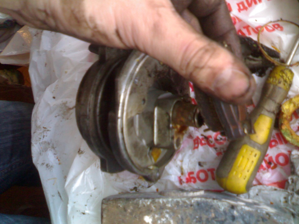 На фото видно как чего разбирается. Но все же на память напишу последовательность. Снимаем коммутатор. Затем бегунок и переворачиваем трамблер, нам нужно будет извлечь из него вал. Вал с маслосгонной канавкой в сторону двигателя, оттуда (с той стороны) нам и нужно его разбирать. На венце со стороны двигателя есть некая выпуклость. Так вот она (или он) находится не ровно с центре этой ответной части, а со смещением. Нужно пометить ее натфилем, как она стоит. Чтобы при установке все обратно поставить все правильно. На Самой ответке есть шплинт, но он закрыт стопорным кольцом на подобии того, на который мы вешаем ключи от квартиры (спираль). Вот ее снимаем и видим под ней шплинт, его тоже выбиваем. У нас освободился вал. Его убираем в сторону. Наша катушка крепится в Втулке впресованной в сам трамблер. Там есть стопорное кольцо. Снимаем его и он остается в руке. Собираем все в обратном порядке. Узнать в нем ли причина можно прозвонить катушку. Сколько сопротивление должно быть, я уже не помню, но у меня вообще показало замыкание, так как лак высох и осыпался от времени на проволоке и витки просто замкнуло. PS: новый коммутатор устанавливаем на термопасту — продается в магазинах для компьютеров. Надеюсь, что кому — то пригодится!