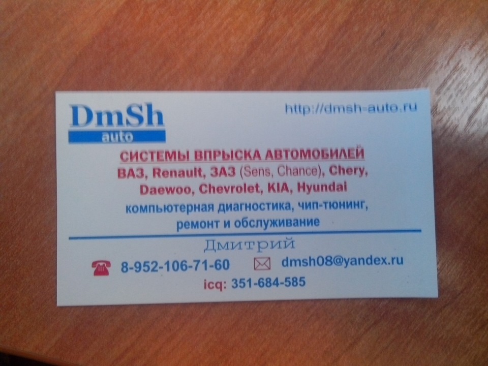 Нашёл гуру инжекторных авто. Много хороших отзывов и действительно своих дел мастер. Итак знакомьтесь — Дмитрий. :) Запостю здесь его визитку, (Нет, не Ярош, не думайте. ;) ) дабы самому не потерять, спец что надо — обращайтесь.