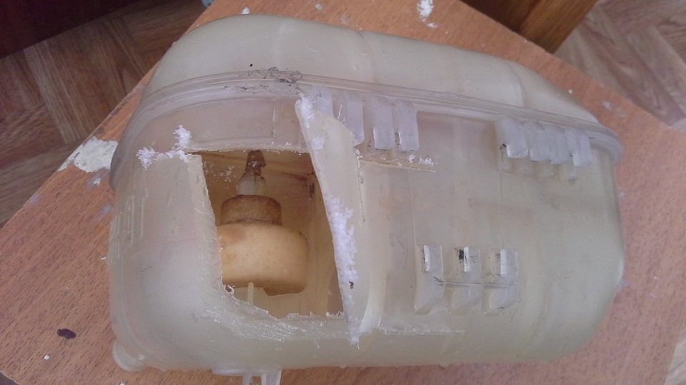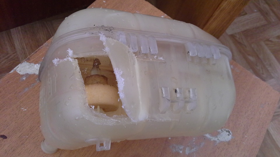 По внешнему вида поплавка и стенок бачка видно, что в систему охлаждения скорее всего попадало масло (болезнь маслоохладителя), что в свою очередь меняло плотность антифриза, а отложения на поплавке также меняли его массу. По этим причинам поплавок просто-напросто не держался "на плаву", а был немного притоплен. У меня на Z18XER было то же самое, помогла замена бачка, смена антифриза и прокладок маслоохладителя.