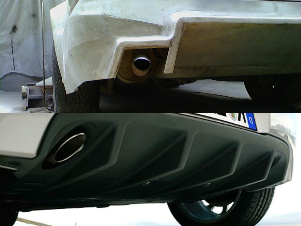 Боковые малые диффузоры под трубы глушителя, будут выглядеть примерно так.