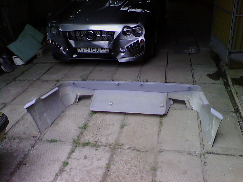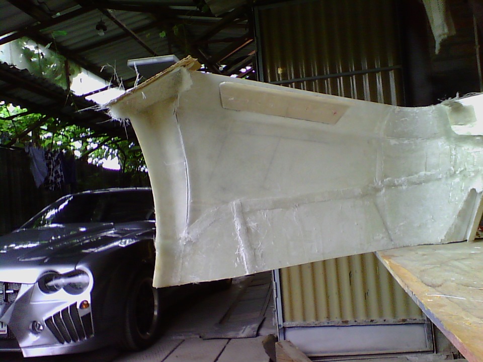Задний обвес (бампер) почти без шпатлëвки.Это и есть основное преимущество стеклопластика перед металлом. Его не крутит и не ведëт при сборке, а значит он исключает такие трудоëмкие операции, как рихтовка, зачистка, шпатлëвка и защита внутри от коррозии.