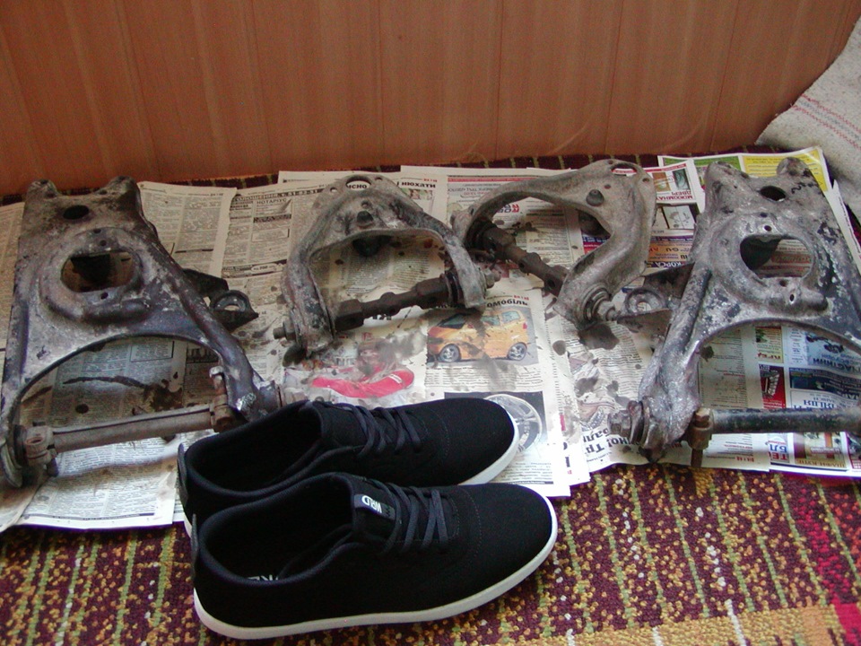 Сперва купил рычаги передней подвески, комплект. Почистил, загрунтовал антикоррозийным грунтом Mixon 992.