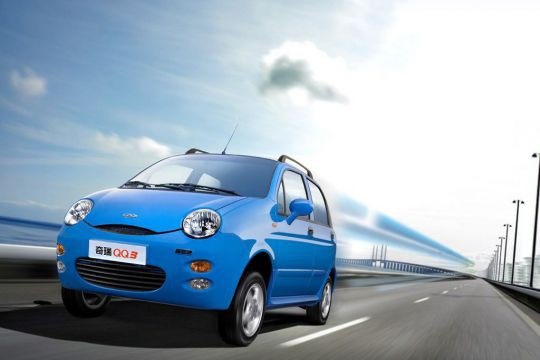 В 2003 году Chery Automobile Co. создает исследовательский центр, специалисты которого начинают активно сотрудничать с известными иностранными автомобильными фирмами. В частности, для того, чтобы научить китайских специалистов следить за качеством выпускаемой продукции и активно его повышать, на завод были приглашены для консультаций инженеры из японского Mitsubishi. Пока исследовательский центр занимался своими прямыми обязанностями высший менеджмент компании решил пойти по проторенному пути и завоевать сегмент малолитражек выпустив Chery QQ, которая явилась почти точной копией хэтчбека Daewoo Matiz (Дэу Матиз) 15-летней давности. Появление этого автомобиля на мировом рынке обернулось грандиозным скандалом. Американская General Motors, корейская дочка которой выпускала Matiz, провела собственное расследование, по результатам которого выяснилось, что марки автомобилей не просто схожи, а почти идентичны. Более того стало известно, что все crash-тесты вместо QQ проходил его тщательно закамуфлированный корейский брат-близнец.