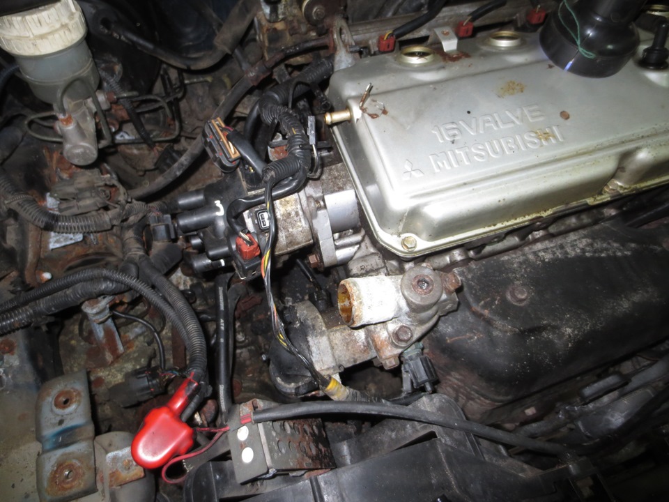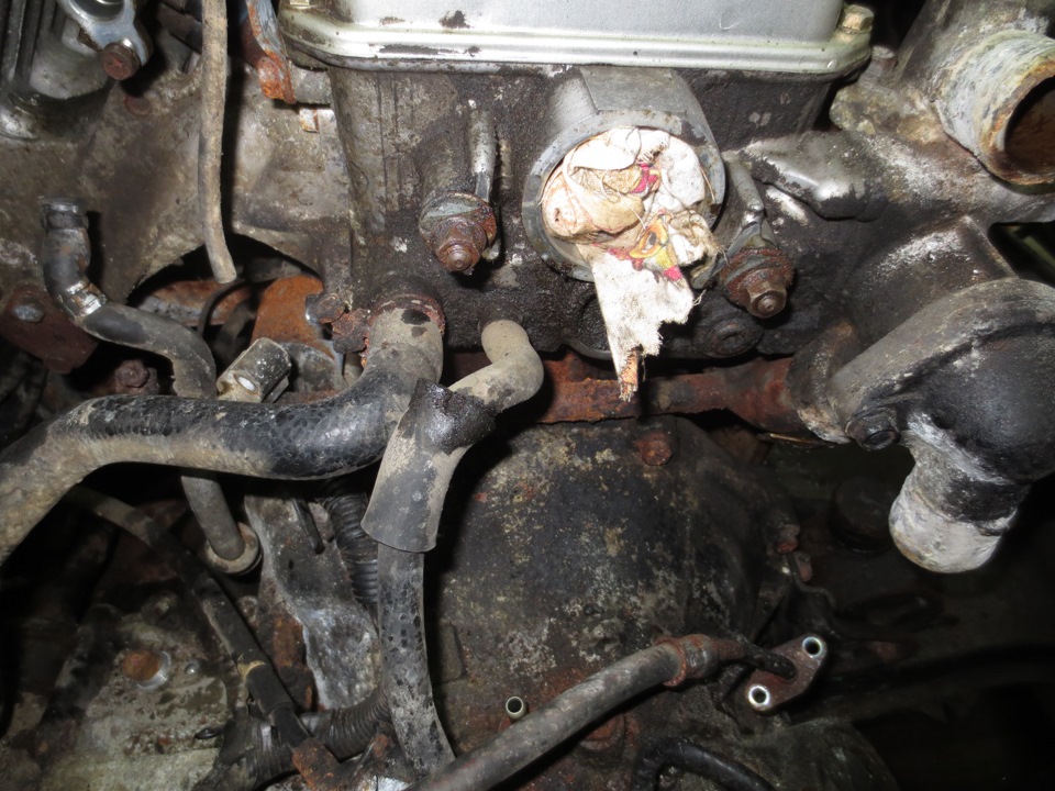 Сегодня поехали на улицу из под капота трамблер, дроссель, радиатор. Много разных дополнительных бачков, и шлангов.