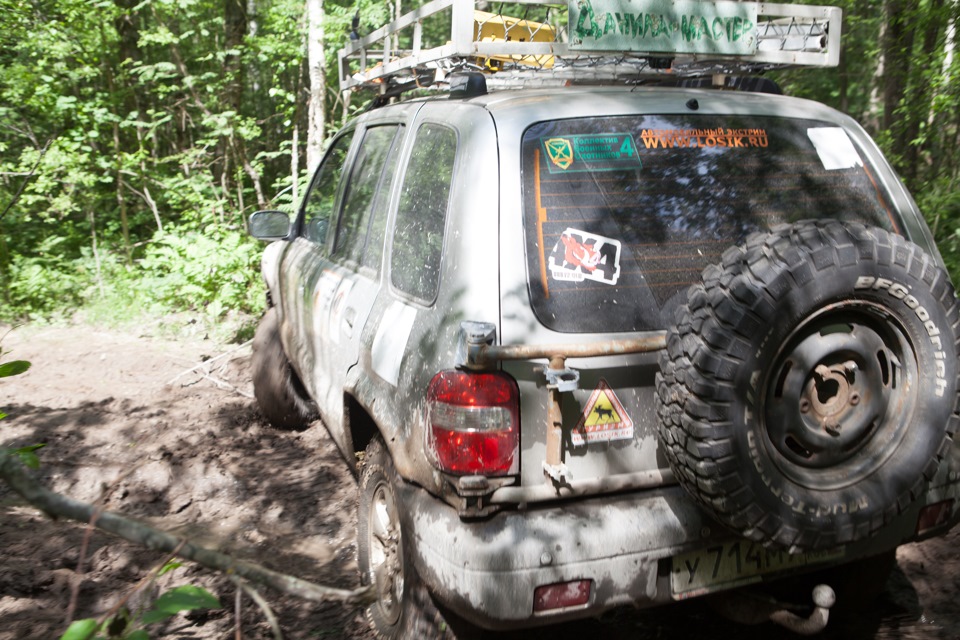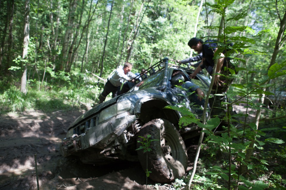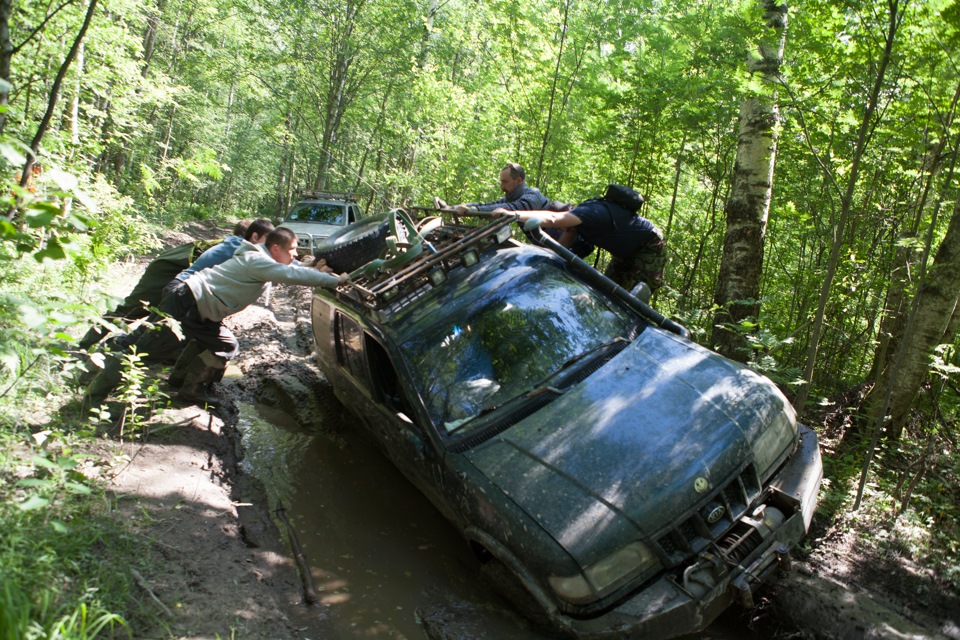 вот тут между берёзок закончился экстрим мы сходили пешком дальше посмотрели что как раз начинается полный п…ц и решение было принято закрыть машину и дальше прогуляться посмотреть как катаются сурьёзные машины