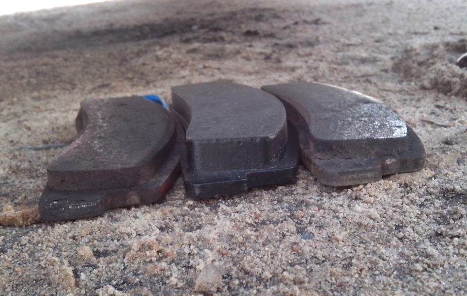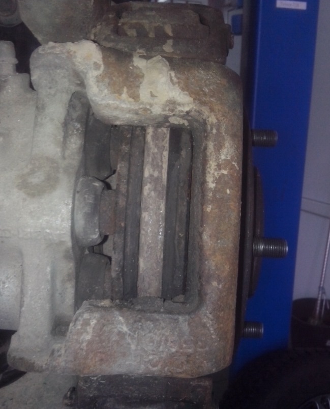 Выход поршней уже большой. А новый комплект колодок уже год лежит в багажнике, ждёт своего часа.