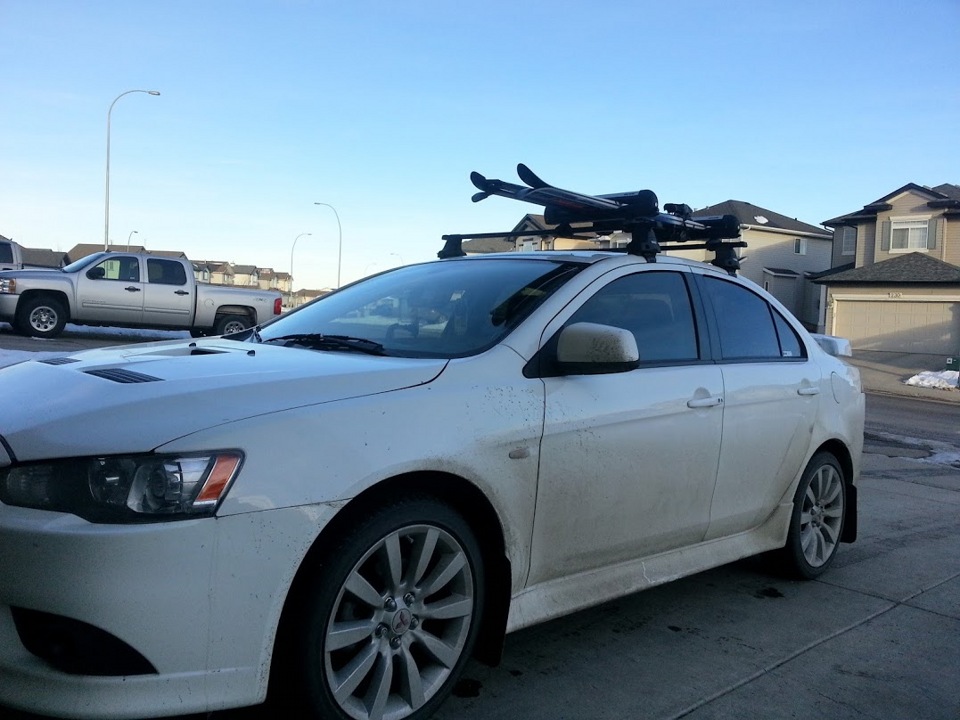 Нашел на местном форуме человека, который продавал дуги Thule с креплениями (foot pack) под Раллиарт/Эволюшен. Правда дуги квадратные и не аэродинамические. Но ничего, зато не дорого. Дуги с креплениями обошлись мне в $200. Потом нашел б/у крепление для лыж MontBlanc ($40). Встретился с человеком, посмотрел, решил брать. Спросил про ключи для него (лыжи закрывать, чтобы не украли или чтобы не открылось оно на скорости), а он ключики забыл. Говорит, я тебе по почте отправлю, а то он живет в пригороде, а ехать чисто за ключами далеко. Он их отправил, но когда я получил конверт, то он был пустой. Ключи просто прорвали конверт и где-то выпали. Я очень расстроился. Залез в инет и понял, что представительства MontBlanc в Северной Америке нет, есть только в Англии. На следующий день позвонил в Англию и спросил можно ли что-то придумать. Они попросили выслать фото креплений и номер на них. Я это сделал и через 15 минут пришло сообщение, что ключи они выслали мне в Канаду БЕСПЛАТНО! Я был просто в шоке! Вот это забота о клиенте, вот это сервис! Ровно через неделю я их получил!