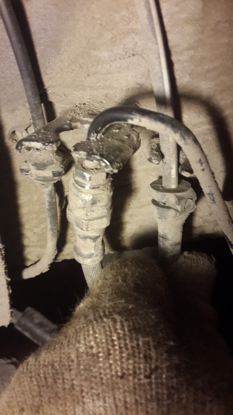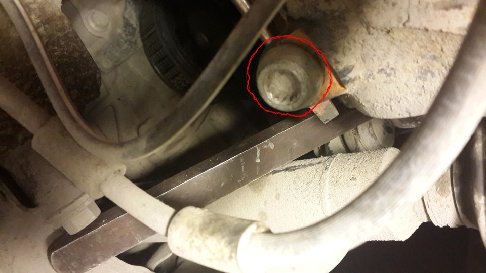 — Снимаем с кузова, крепление датчика и тормозную трубку (иначе при лифте балки их может оборвать)